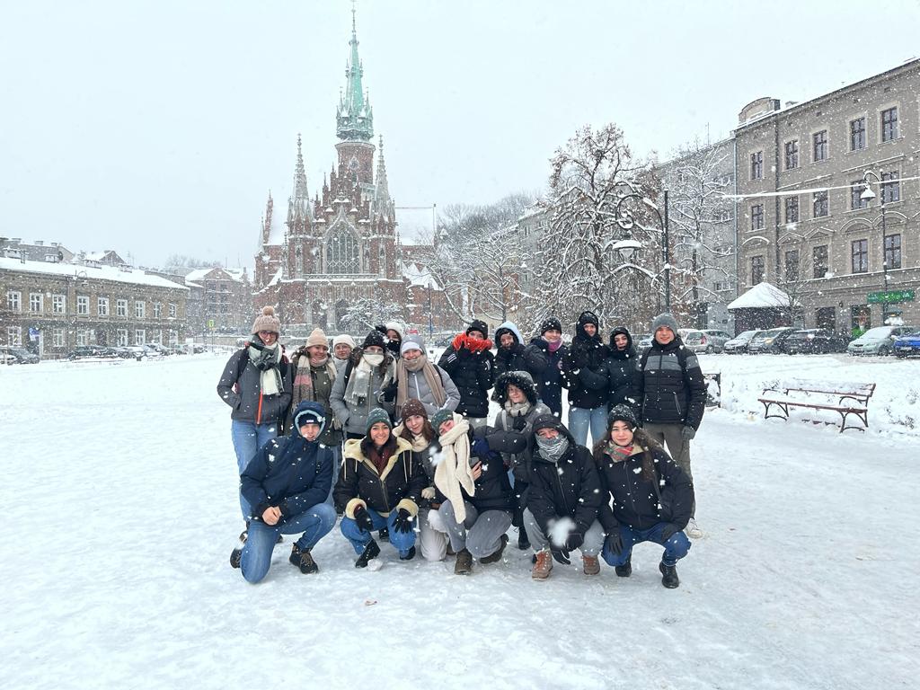 Au programme de leur voyage culturel "Sur les traces des victimes de la Shoah", les élèves ont parcouru les différents quartiers de la ville (quartier royal de Wawel, quartier historique, quartier juif). Pour parfaire le tableau, la neige s'est même invitée dans leur séjour !