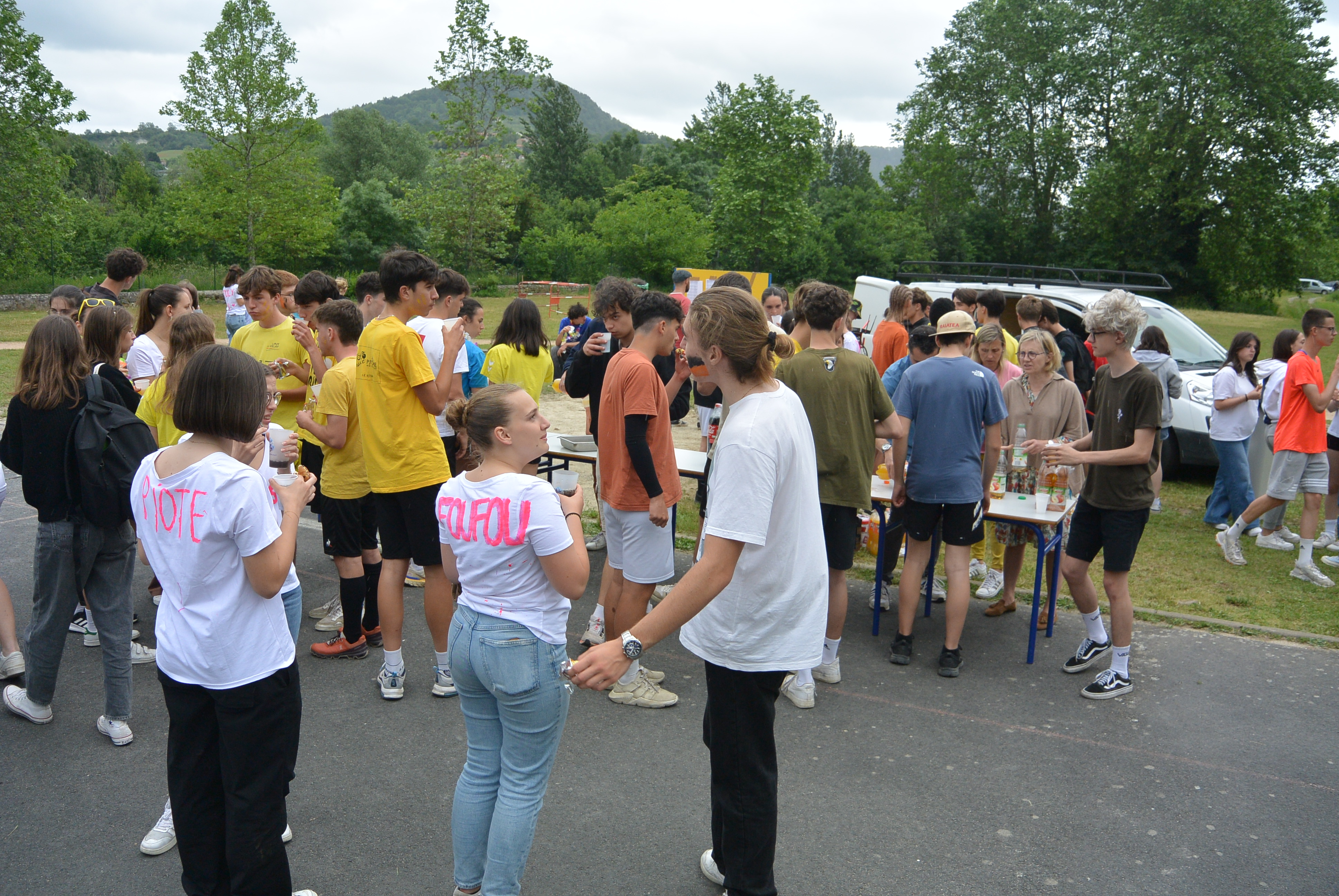 Les élèves de Terminale se sont retrouvés à 11h30 autour d'un buffet au Chartruck avant de démarrer les épreuves. Ce ne sont pas moins de 110 élèves qui ont répondu présent.e.s pour participer à ce repas et aux jeux organisés pour eux.
