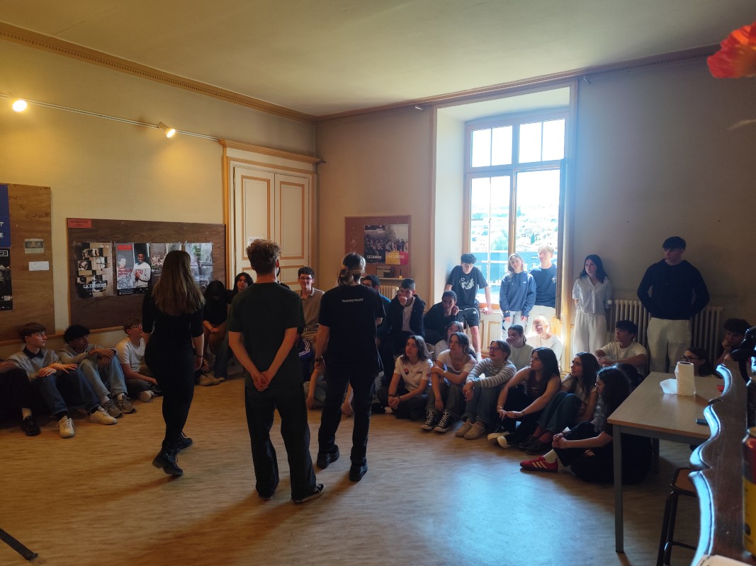 L'après-midi a ensuite laissé place à la pratique. Lors de deux ateliers successifs, les élèves ont pu s'exprimer, créer et improviser en anglais. À travers des jeux et des activités basés sur l'art dramatique, chacun a pu se lancer de façon ludique et totalement décomplexée.