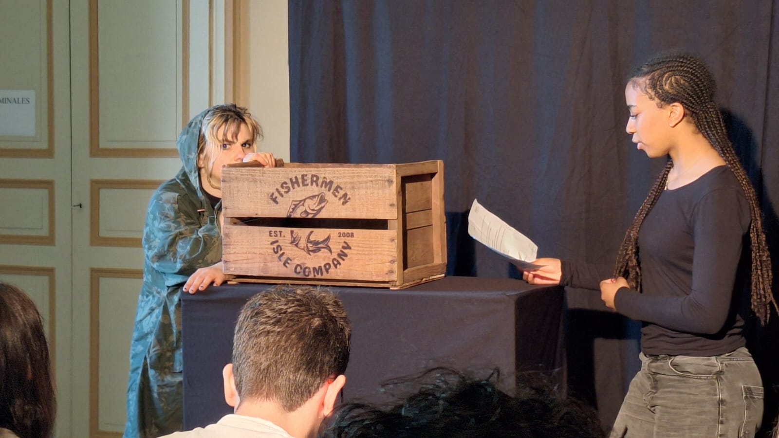 Toujours sous l'impulsion de la professeure d'anglais Mme Chalier, cette journée d'immersion a démarré sur les chapeaux de roues. Dès 10h30, les élèves ont pu assister à la nouvelle pièce de la troupe, intitulée "Fish & Ships". Fidèle à son ADN, la compagnie a proposé un spectacle 100% participatif : après un échauffement et une répétition matinale privilégiée avec les trois acteurs professionnels, 6 lycéens ont eu la chance de monter sur les planches pour donner la réplique à la troupe !