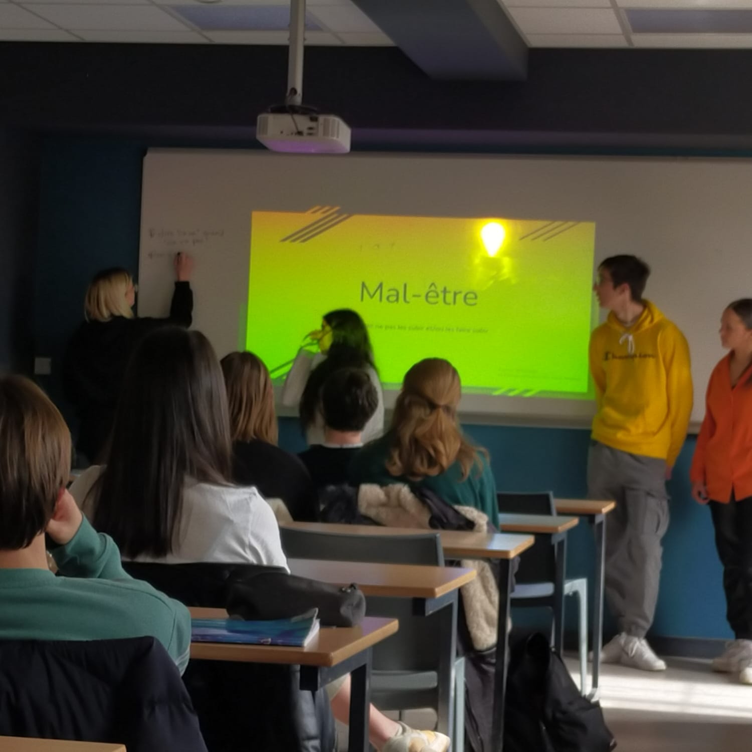 Dans le cadre de leur parcours scolaire, les élèves en classe de Terminale ASSP (Accompagnement, Soins et Service à la Personne) doivent préparer une démarche de prévention et de promotion de la santé dans un établissement scolaire. Un groupe de 5 lycéens a fait le choix d'intervenir auprès des élèves de 2nde sur le thème du mal-être. Ce choix donne suite à une réflexion personnelle sur leur parcours de lycéens en prévention et promotion de la santé. Nous avons accepté de les accompagner dans cette démarche.