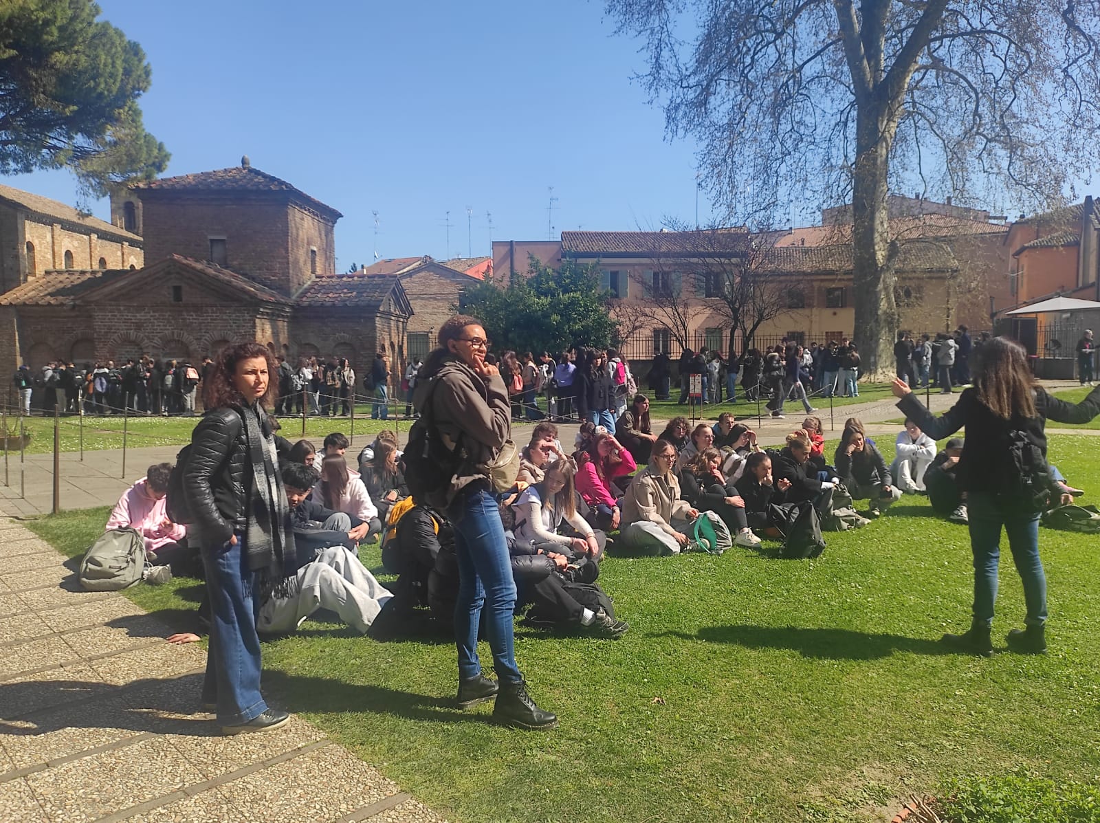 Nous sommes arrivés samedi après-midi sous les applaudissements !Les Italiens nous attendaient avec impatience. Samedi soir, certains sont allés au match (Bologne-Lazio), d'autres se sont retrouvés chez les uns ou les autres pour manger une pizza.
